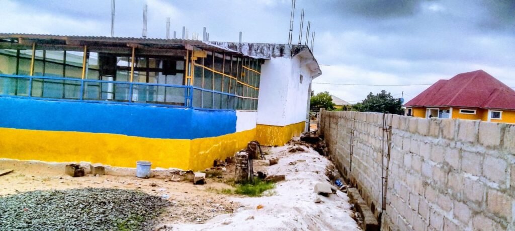 Here you can see the wall that is being built around the school. The safety of our students has been a big concern for some time, and now we can feel secure about their safety when they are on campus. Also, in this picture, you can see the kitchen and dining room that has ben constructed for the students to have lunch in. We feed all the students one meal a day, and for some, that is the only meal they have each day. We believe the children can do so much better at learning with food in their stomach. We do collect a registration fee from the students to help cover this, but there are about 60 students whose family cannot afford this, and we cover the cost and feed them daily.